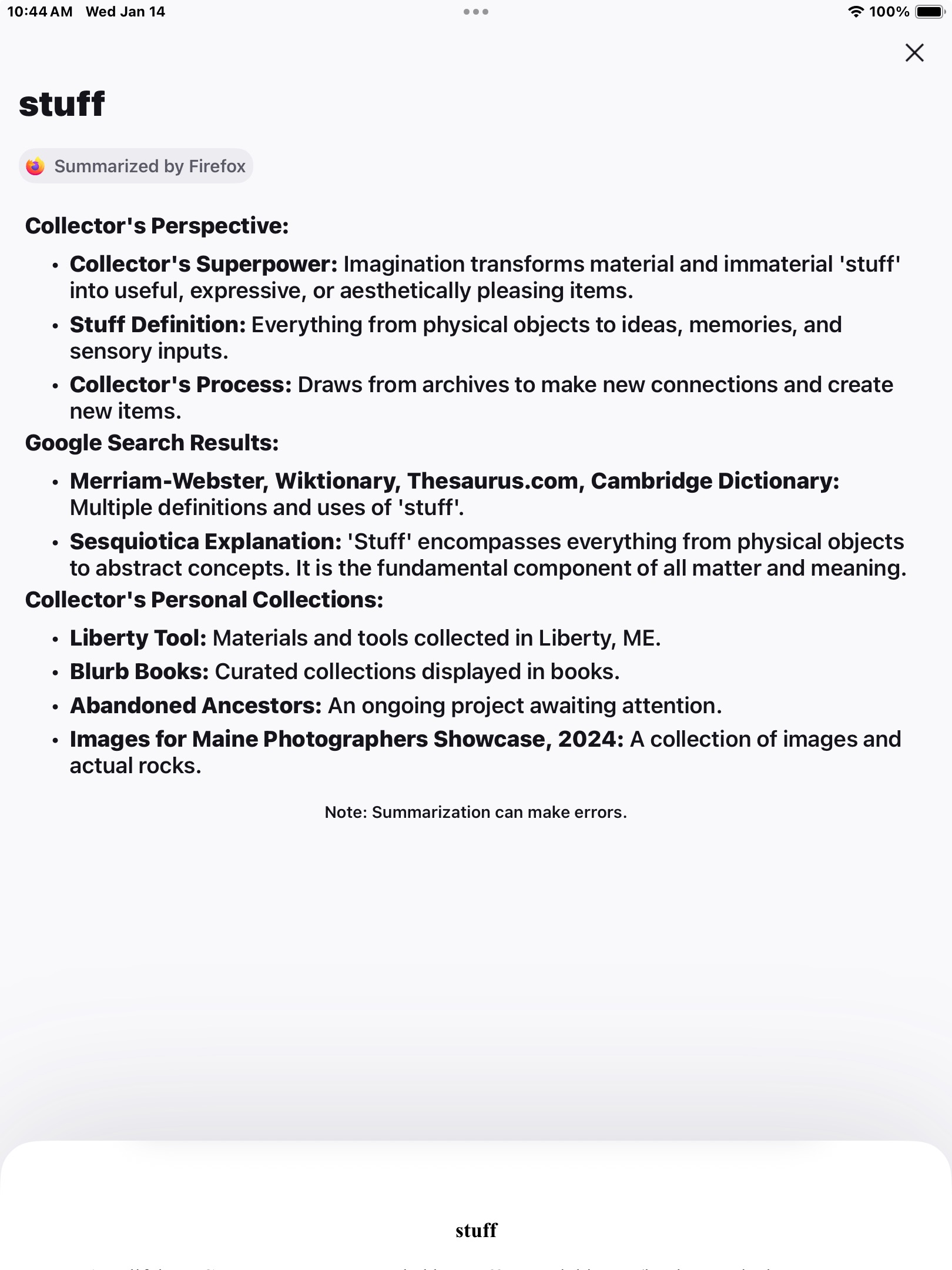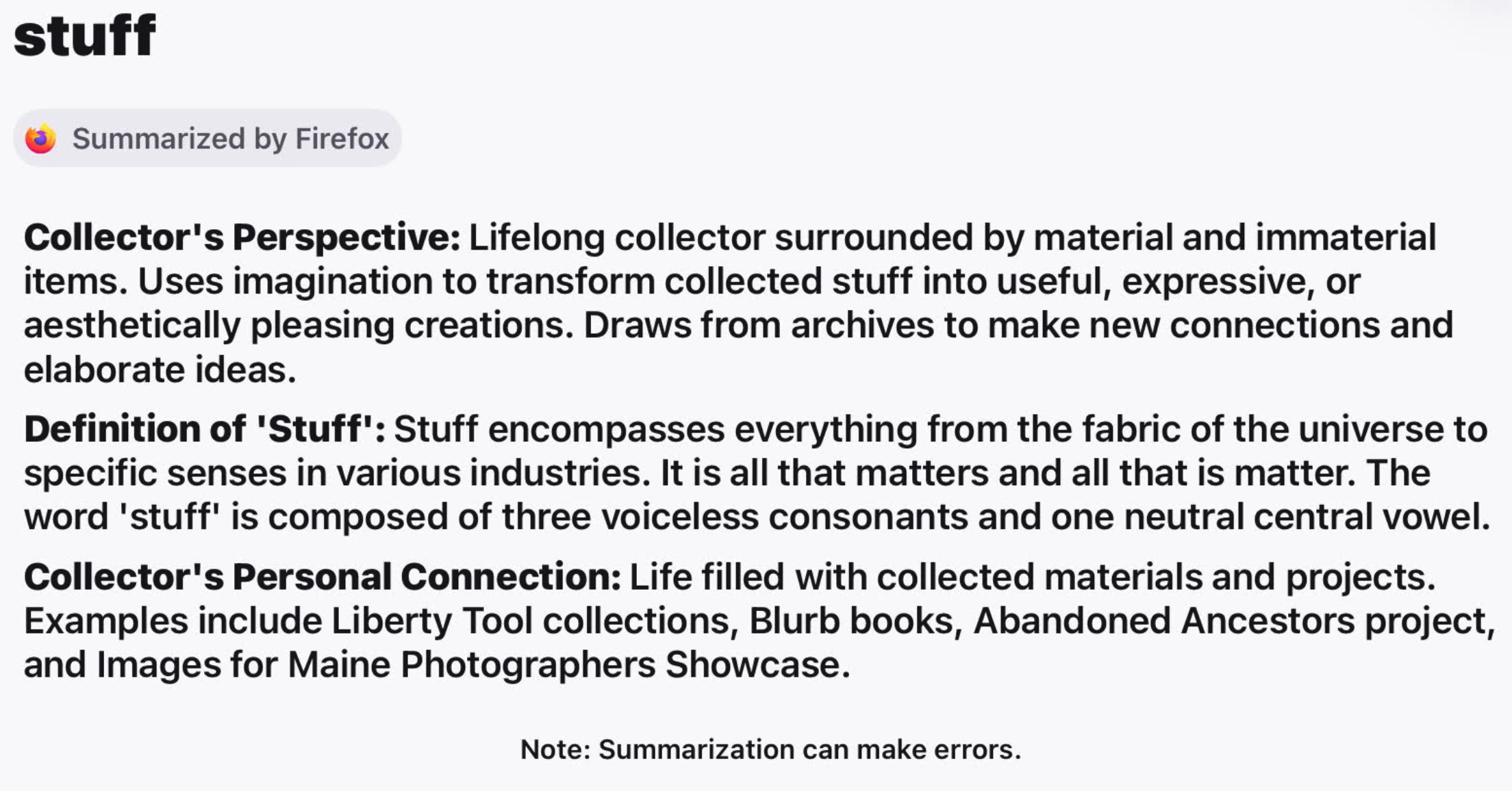 If I ask the google for explication of 'stuff', here's what the first page of results looks like 27xii25: